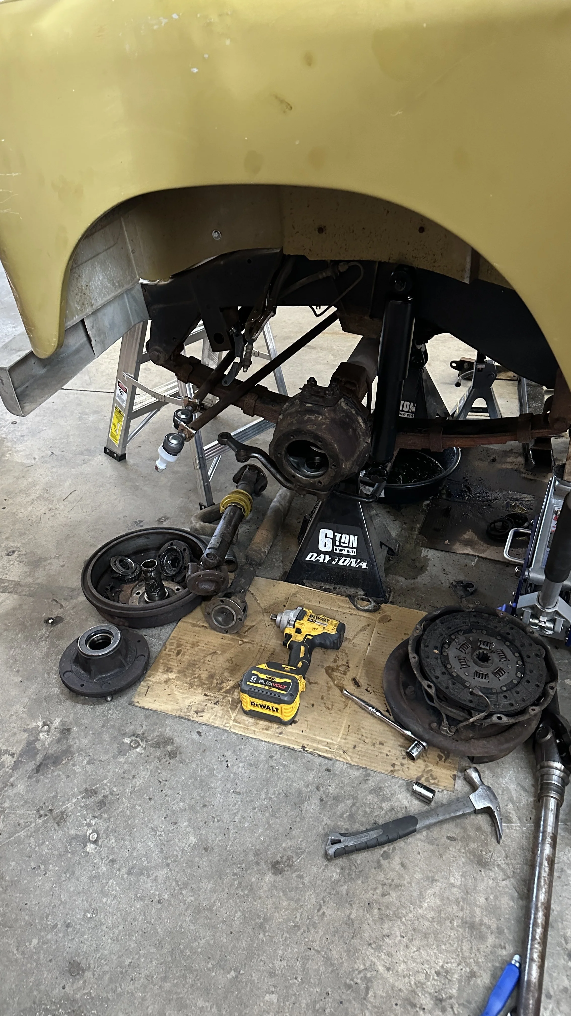 We tore down the engine, fixed the head gasket that had given up, and rebuilt the heart. Differential? Worn and whining. We gutted it, rebuilt it, sealed it tight. The steering was vague — now it's sharp, with a new box and fresh tie rods. The alternator’s new. So’s the battery. The carb is crisp, the spark plugs hot, and everything under the hood now speaks the same clean mechanical language.